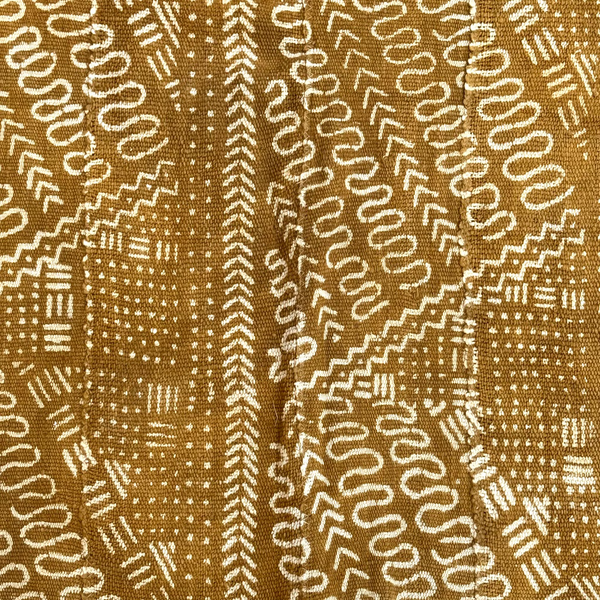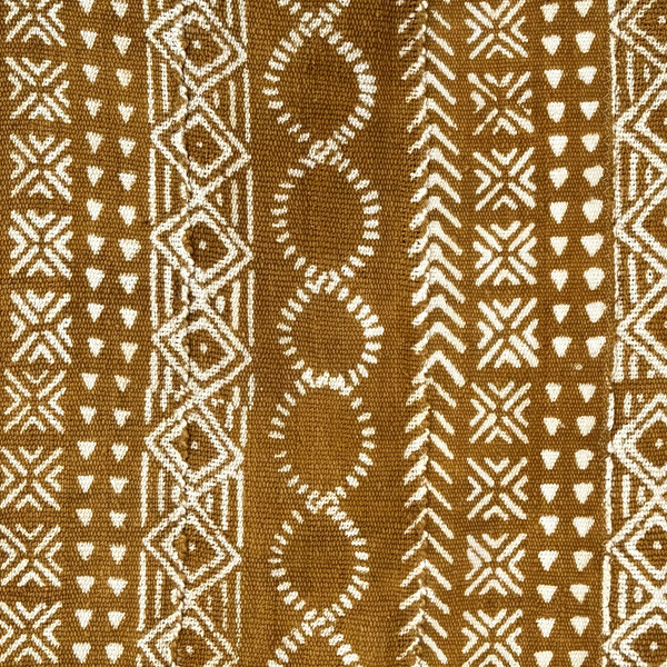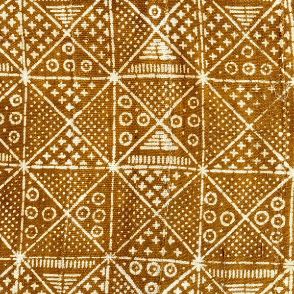 Mud cloth, or bògòlanfini as it's known in Bambara, is a distinctive Malian textile steeped in tradition and symbolism. Created by skilled artisans, primarily women, the process is a labor of intricate artistry. Handwoven strips of cotton are meticulously stitched together to form a larger cloth, which is then dyed with fermented mud, rich in iron content. The mud, collected from specific ponds and allowed to ferment for months, creates a range of earthy tones, from deep browns and blacks to ochre and rust. Following a complex resist-dyeing technique using stencils or freehand painting with a mixture of mud and other natural materials like leaves and bark, the cloth is repeatedly dyed and washed, revealing striking geometric patterns and symbolic designs. These patterns, passed down through generations, often tell stories, convey social status, or represent proverbs and beliefs, adding layers of meaning to each unique piece. Beyond its aesthetic appeal, bògòlanfini holds cultural significance, often used in initiation ceremonies and as a powerful symbol of protection and identity.